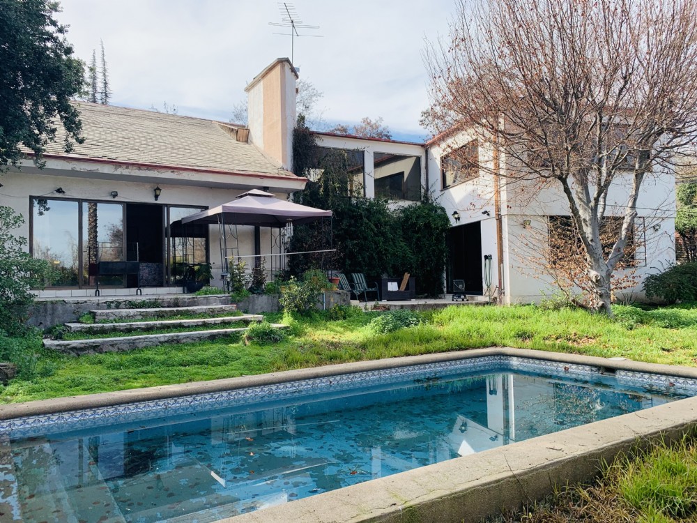 CASA TOTALMENTE AISLADA, ubicada en sector residencial de Los Dominicos, amplio terreno 1520 metros, antejardin y estacionamiento para 5 autos, portón eléctrico, riego automático, CASA amplia casa bien emplazada y con construcción sólida, hormigpon armado y buenas fundaciones del año 1989, recepción final con construcción de 478 metros. PLANTA BAJA, amplio acceso y hall para sector de recibos separados con desnivel para living y salidas a terraza, antejardin y jardín posterior, terraza. 2 dormitorios, uno muy amplio, ambos con baño en suite, gran cocina, comedor de diario, servicios dobles, patio de servicio. PLANTA 2, dos grandes dormitorios, primero con sala de estar cerrada y dormitorio en suite, gran estar y segundo dormitorio, baño completo. jARDIN posterior con amplias terrazas, piscina, riego automático. La casa tiene termopaneles en toda la casa, calefacción por metrogas con losa radiante, sin deuda hipotecaria y titulos al día, Casa apta remodelación. VENDE JOANNA MAFFEI [email protected] + 569 92359039